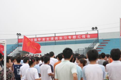 6月24日下午,毕业生顶岗实习专题汇报会在新校区操场隆重举行,03、04级近5000名学生参加了汇报会。5位同学的精彩演说赢得了一阵阵热烈的掌声,他们从怎样由一名学生尽快转化为一名职业人的过程,从亲身感受到的大学生就业形势,从企业欢迎的人才素质及自己的个人职业定位等方面,以自己的实习经历和亲身体会给在场的同学上了生动的一课。