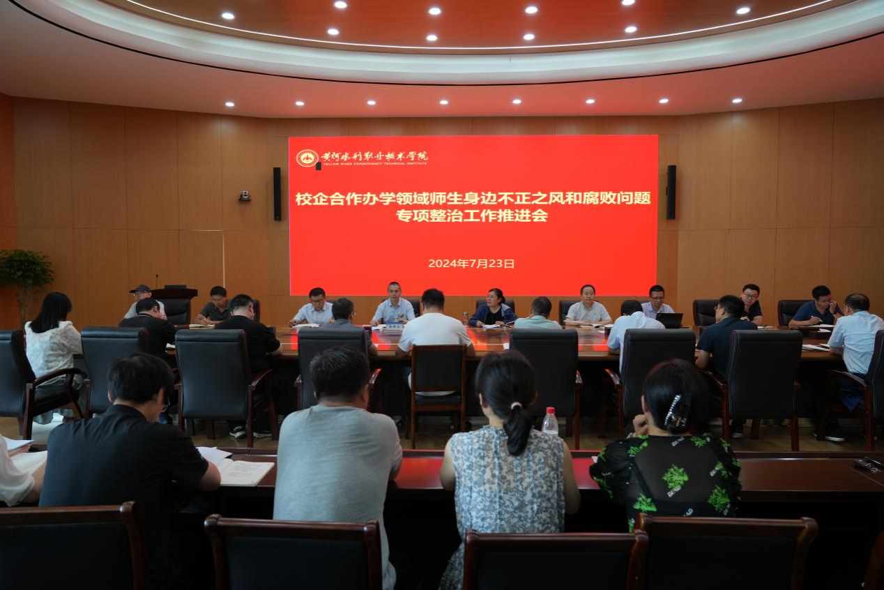 会上,陶永霞介绍了学校校企合作办学问题专班工作情况,对近期重点工作做了布置安排。教务处副处长李孝坤宣读了36365官网校企合作办学领域群众身边不正之风和腐败问题专项整治实施方案。