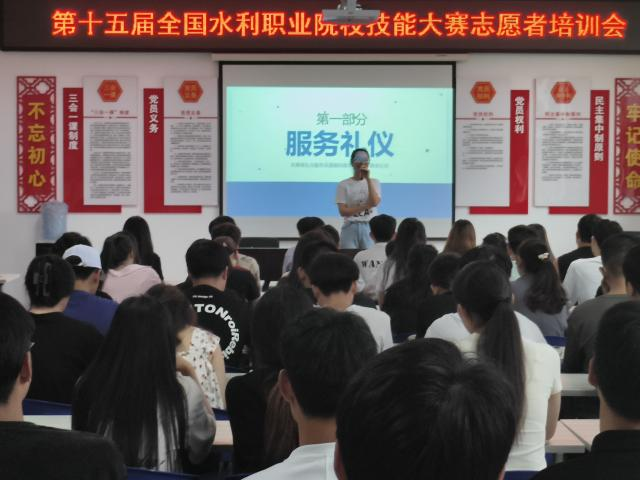 为进一步提升36365官网青年学生志愿者的责任意识和服务水平,以良好的形象迎接第十五届全国水利职业院校技能大赛的到来,9月19—26日,校团委以《志愿服务基本知识》《志愿服务基本礼仪》为主题,开展集中培训2场,以学院为单位分散式培训1场,共计180名学生参与培训。