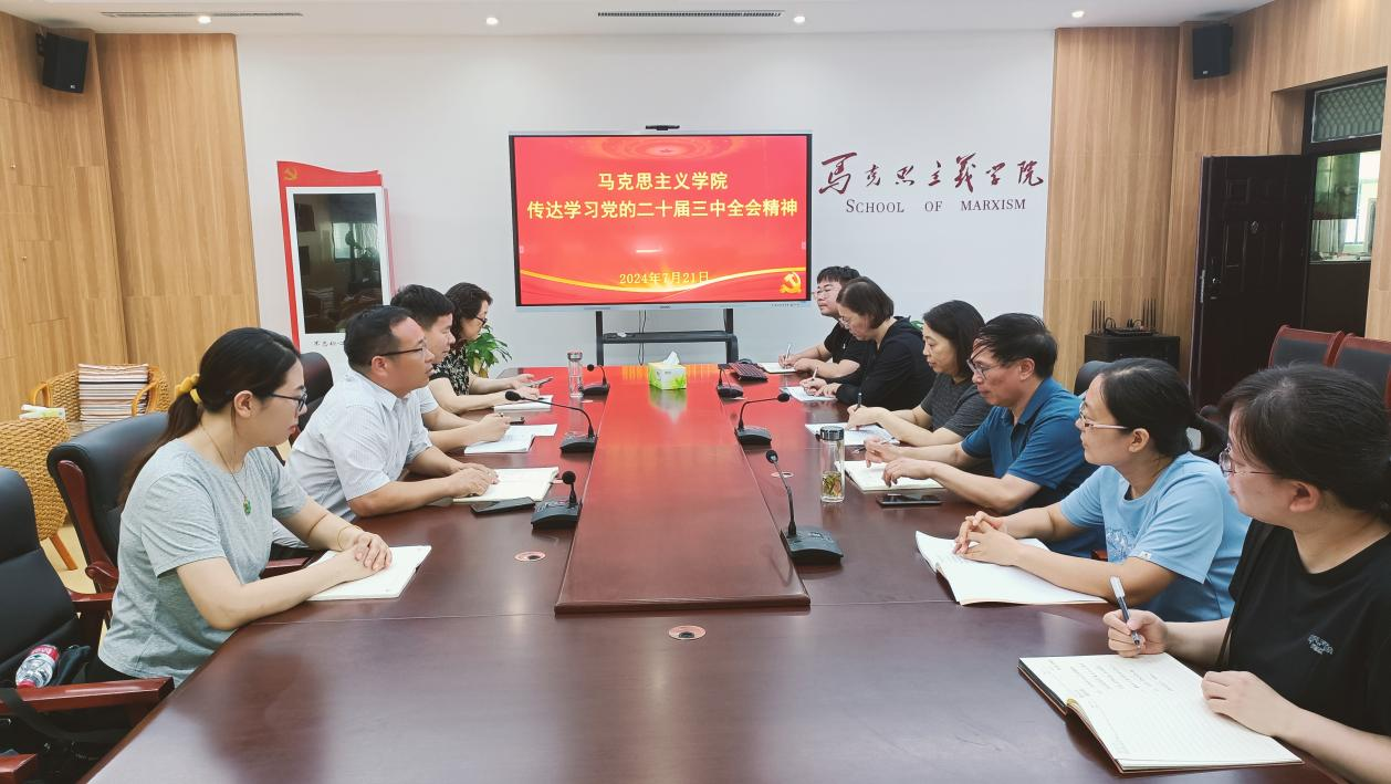 7月21日上午,马克思主义学院在学院会议室召开传达学习党的二十届三中全会精神交流会,学院全体科级以上干部参会。