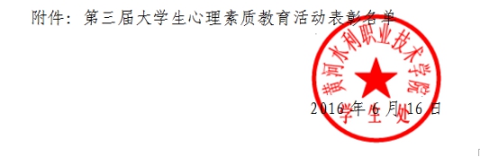 为进一步加强36365官网大学生心理健康教育工作,提升广大学生心理健康意识和水平,促进和谐校园建设,我校于3月-5月期间开展了第三届大学生心理素质教育系列活动。本次活动普及了心理健康常识,推进了心理健康教育,涌现出了一批先进工作集体和先进个人,现予以表彰。表彰名单见附件。