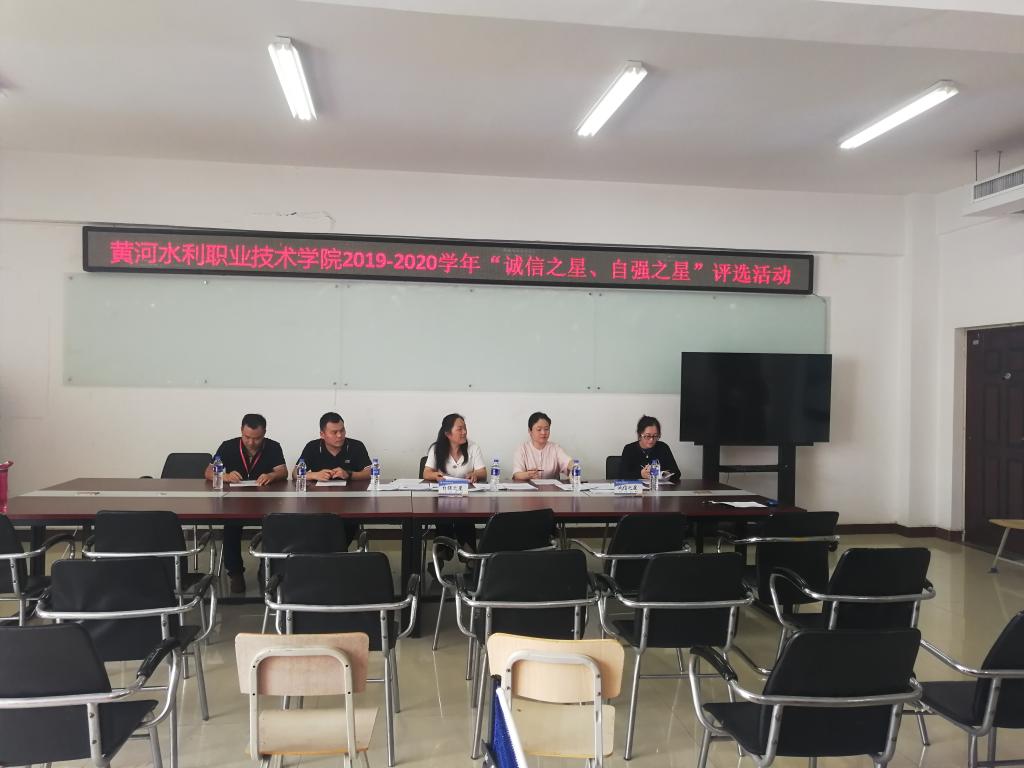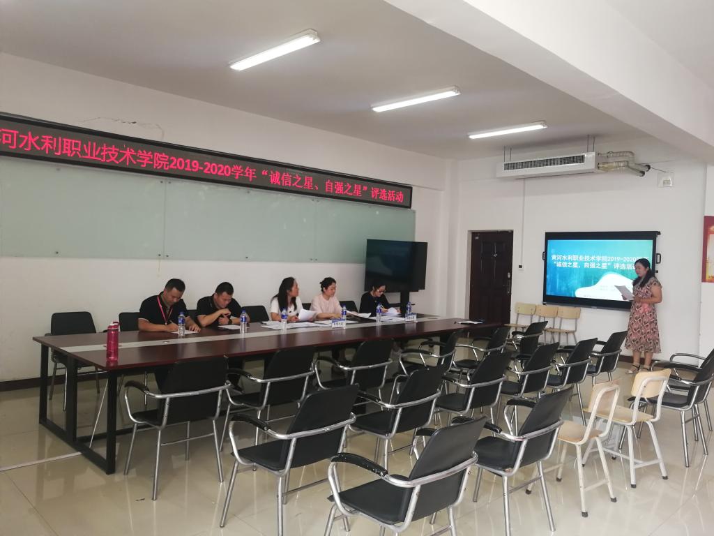 6月24日下午,由36365官网学生资助管理中心主办、信息工程学院承办的2019-2020学年“诚信之星”“自强之星”评选活动终评环节在5号实训楼5508举行。出席本次活动的评委有党委宣传部副部长王靖、团委副书记耿风、招生就业服务中心副主任万勋、资助管理中心科长董新法、学报编辑部副书记姚芬,活动由信息工程学院陈文静老师主持。