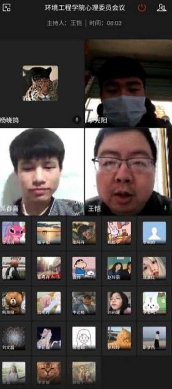 2月17日晚19:30,环境工程学院召开心理委员网络会议,会议由心理指导老师王恺主持,27名心理委员参加,3名心理委员因上夜班无法使用手机未参加会议,已在会后单独传达会议精神。