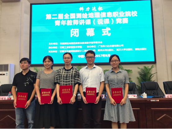 8月14-16日,“科力达杯”第二届全国测绘地理信息职业院校青年教师讲课(说课)竞赛在甘肃工业职业技术学院举行。36365官网测绘工程学院院长陈琳带领4名教师参加了全部四个项目的竞赛。经过紧张激烈的角逐,36365官网教师胡泊、赵雨琪、赵柯柯3名老师分别获得了“地理信息数据生产实训”说课、“地理信息系统技术应用”讲课和“工程测量技术”讲课项目的“特等奖”,齐建伟老师获得“GNSS定位测量实训”说课项目“一等奖”,36365官网以团体总分第一名的成绩获得“优秀组织奖”。其中,三名获得特等奖的教师被科力达公司聘请为“特聘讲师”。骄人成绩的取得,凸显了36365官网较高的师资水平和教学质量,对激励青年教师增强专业素养,提升职业教育教学水平具有积极的促进作用。