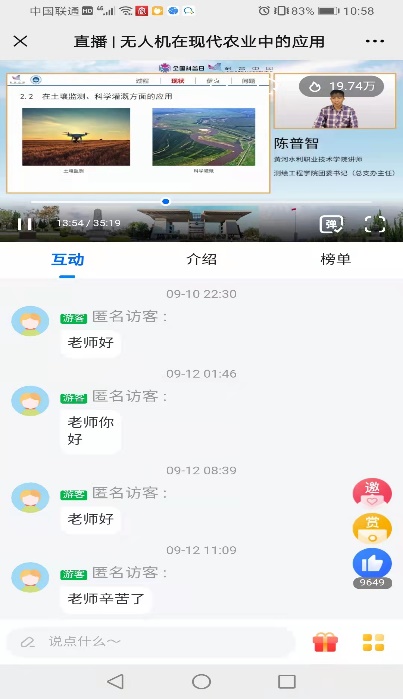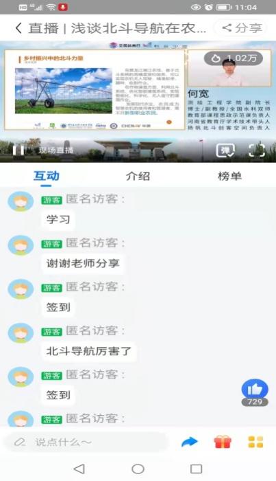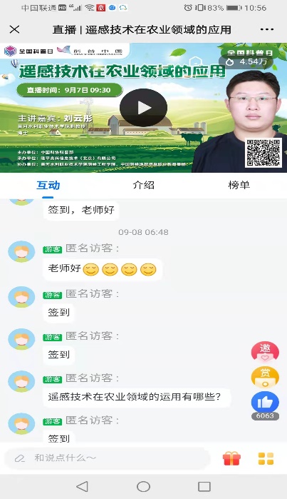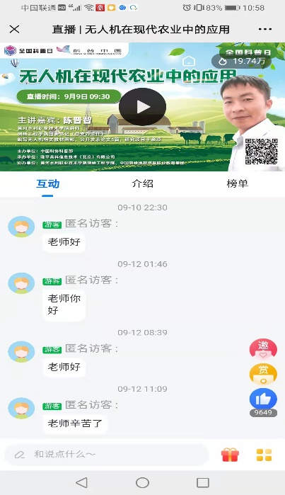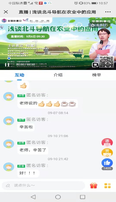 由中国科协科普部主办,bet36365路检测中心测绘工程学院协办的《智慧农业为乡村振兴注入新动力》于9月6日连续5天在科普中国、云上智农平台进行直播。bet36365路检测中心测绘工程学院副院长何宽带领团队成员孙飞、刘云彤、陈普智和王伟峰等5名教师,从《浅谈北斗导航在农业中的应用》、《遥感技术在农业领域的应用》、《农机导航自动驾驶技术应用及发展》、《无人机在现在农业中的应用》、《GIS技术助理乡村振兴》等5个方面进行讲述,深入浅出地科普各种技术在智慧农业中的应用。视频开播至今,热度已超过45万。