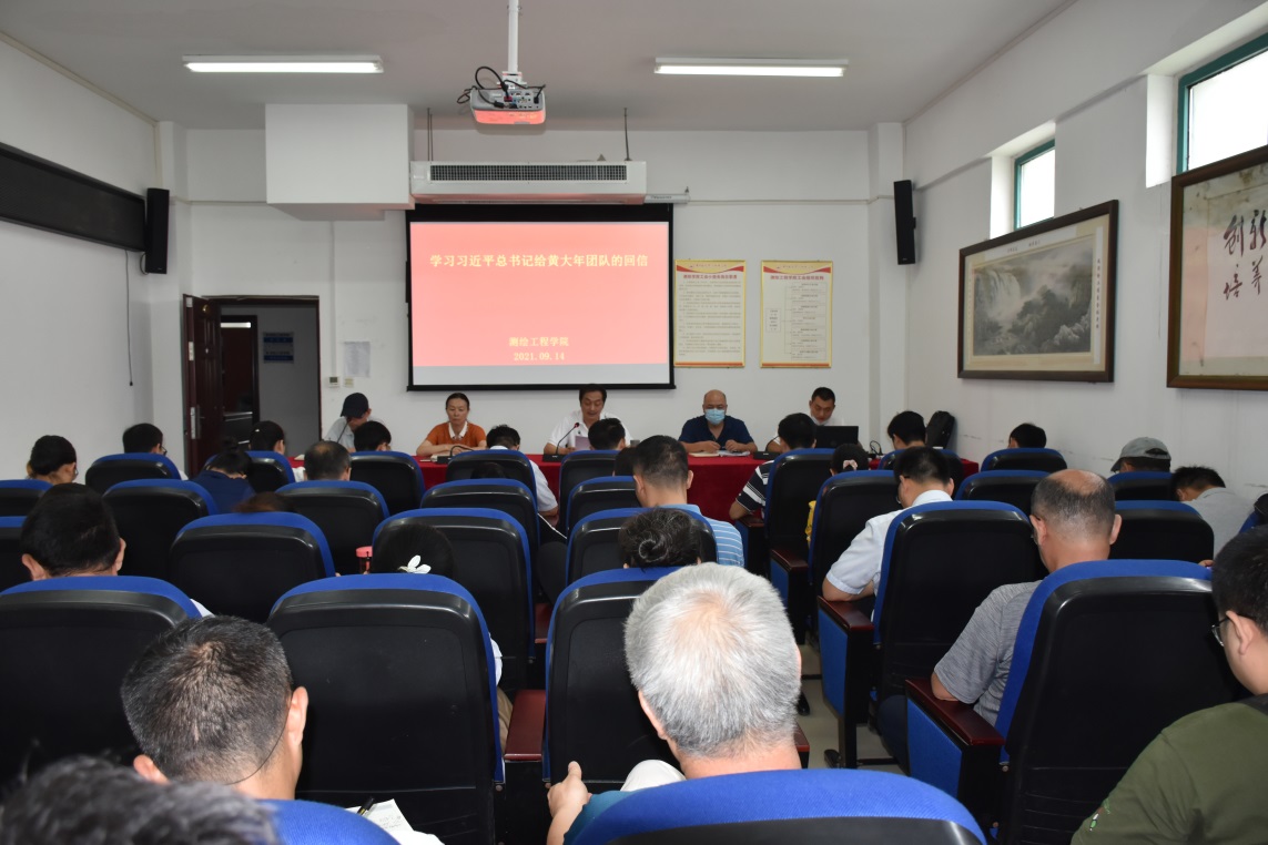 党总支书记纪勇、院长陈琳带领学习校党委书记周保平、校长胡昊在学校工作会议上的讲话,以及习近平主席给黄大年团队的回信。无论是思想认识还是行动目标上,我们都要高度重视,积极行动,把自己融入到学校发展的大格局中,努力做到和学校同向、同行,把我们的思想和行动迅速聚焦到双高建设的坐标点上,作风扎实,主动担当,吹响起我们双高和高职本科建设的冲锋号。