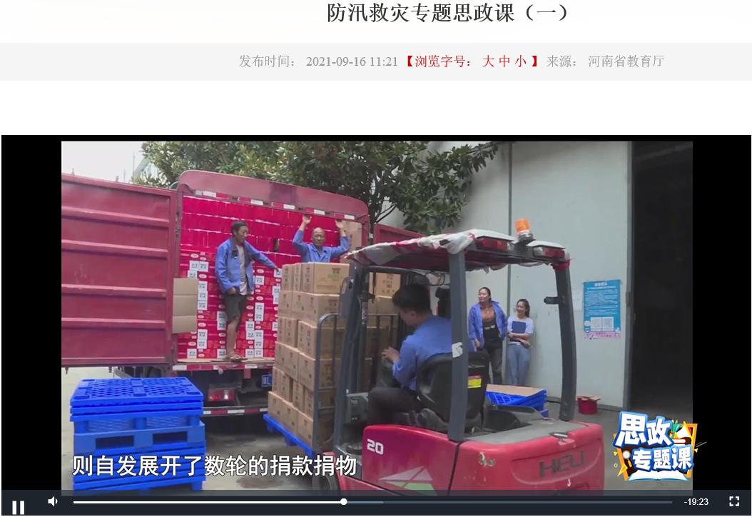 7月河南遭遇强降雨天气,以郑州为首的多个城市及地区出现严重内涝,个别河流水位超警、水库溃坝,部分铁路停运、航班取消,造成了重大人员伤亡,河南省的情况牵动着每一个中国人的心。一方有难、八方支援,防汛抗洪救灾期间彰显出的伟大民族精神使每一位师生为之动容,洪灾面前全国人民的行动为我们做了最好的立德树人教育,“橄榄绿”、“消防橙”、“守护蓝”、“志愿红”、“天使白”成为了这个暑假温暖河南省、温暖全中国的最绚丽的色彩。