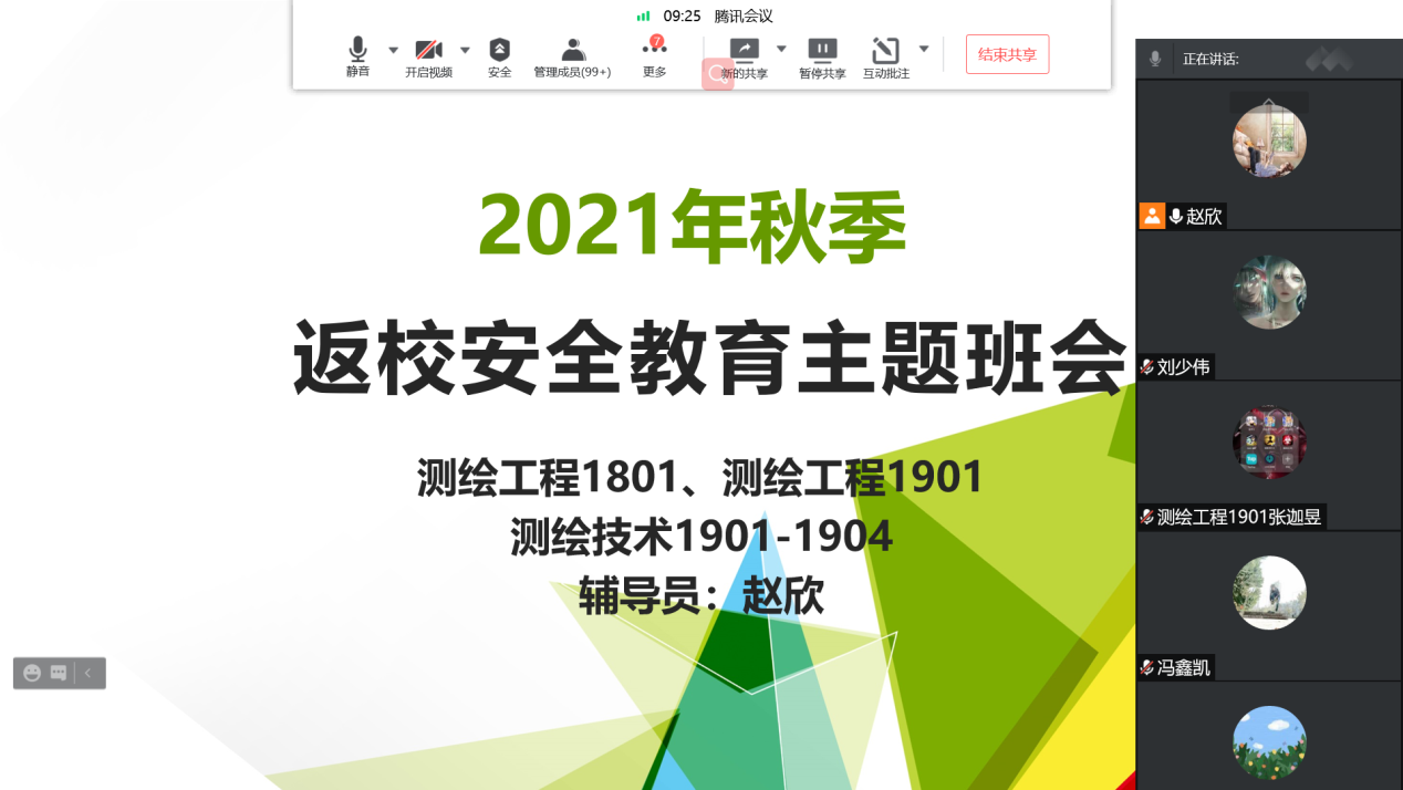 为进一步做好学生返校管理工作,提高学生返校过程中的安全意识,保障学生顺利开学返校,9月26日,我院19级辅导员赵欣于召开了线上安全教育主题班会。