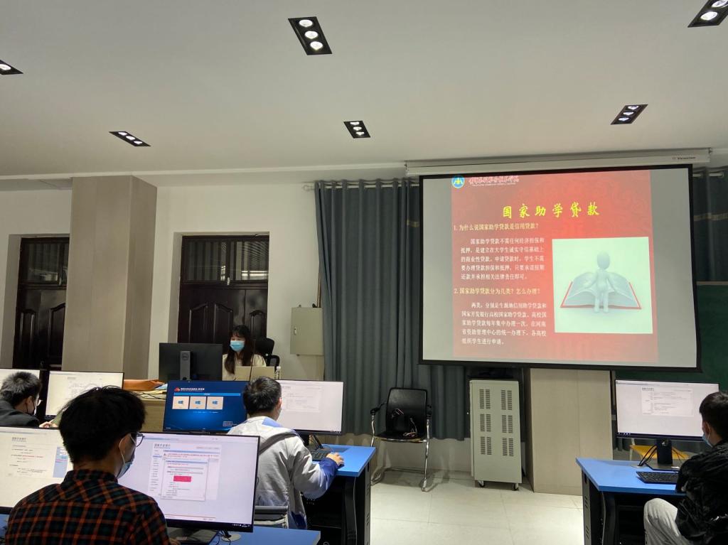 图1 资助助理陈海迪给新生讲解国家助学贷款操作过程