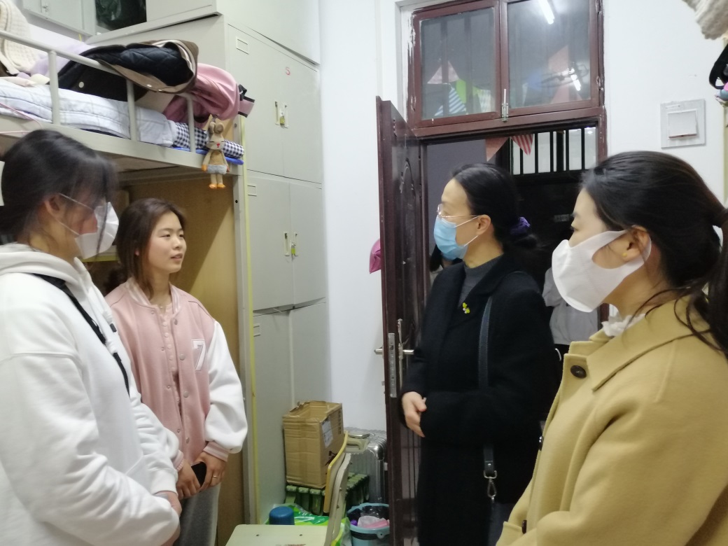 3月2日晚,测绘工程学院院长陈琳、党总支副书记彭战松带领全体辅导员和学生干部深入宿舍看望学生。