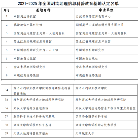 图 2021-2025年全国测绘地理信息科普教育基地认定名单