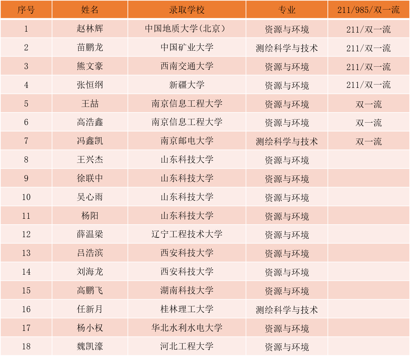 2022年全国硕士研究生录取结果陆续揭晓,我院与华北水利水电大学联办的测绘工程本科2022届毕业生考研捷报频传,18名同学顺利考取中国矿业大学、中国地质大学(北京)、西南交通大学、新疆大学、南京信息工程大学、山东科技大学、华北水利水电大学等高校硕士研究生。