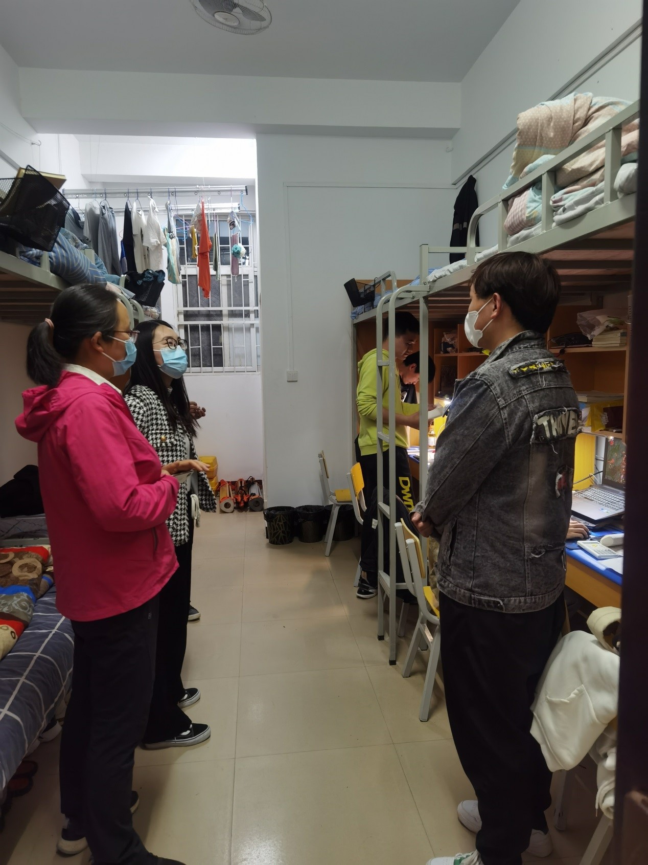 为了严格落实辅导员、班主任疫情防控责任,测绘工程学院从5月12日起,由辅导员和班主任两两结对深入学生宿舍对学生学习、生活等情况进行检查。辅导员队伍和班主任队伍的结合,加强了疫情防控检查力度、宿舍安全和内务检查力度,同时加深了对学生宿舍学习、生活的了解,使教学延伸入宿舍,拉进了师生距离,建立起深厚的师生情谊,助力构建校园安全稳定。