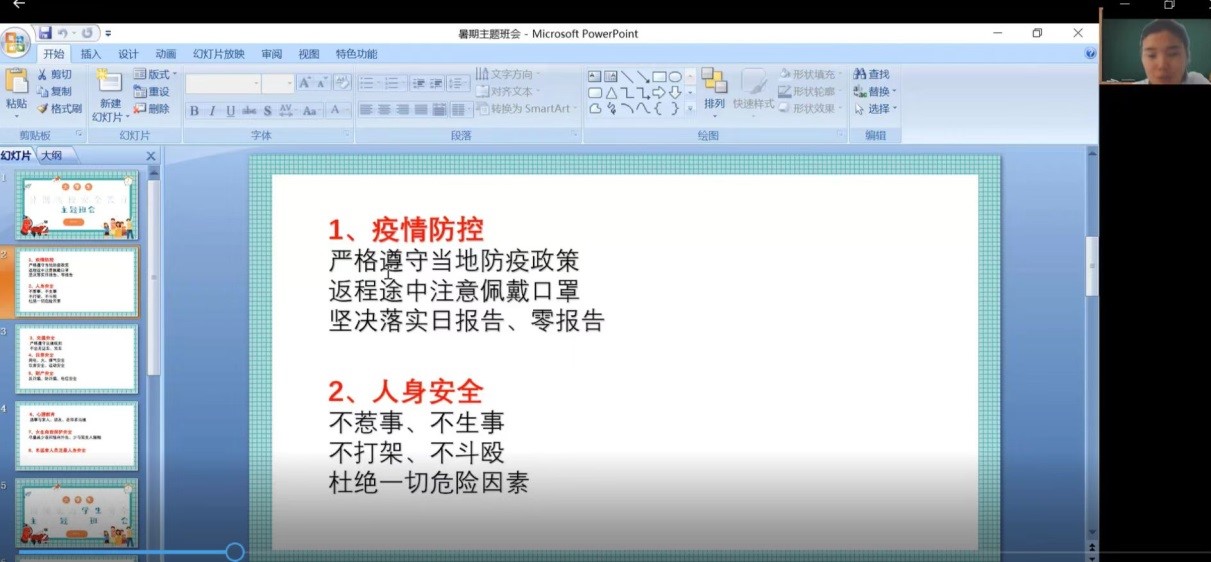 各位老师向同学们讲述了可能存在的安全隐患和突发事件处理常识,让同学们认识到在日常生活中防患于未然的重要性和生命的脆弱与可贵,及时为同学们敲醒了安全的警钟!最后特别提醒同学们,疫情常态化背景下,大家要尽可能减少外出,不去人流密集的地方活动,尤其是晚上不要外出,注意人身、财产安全。