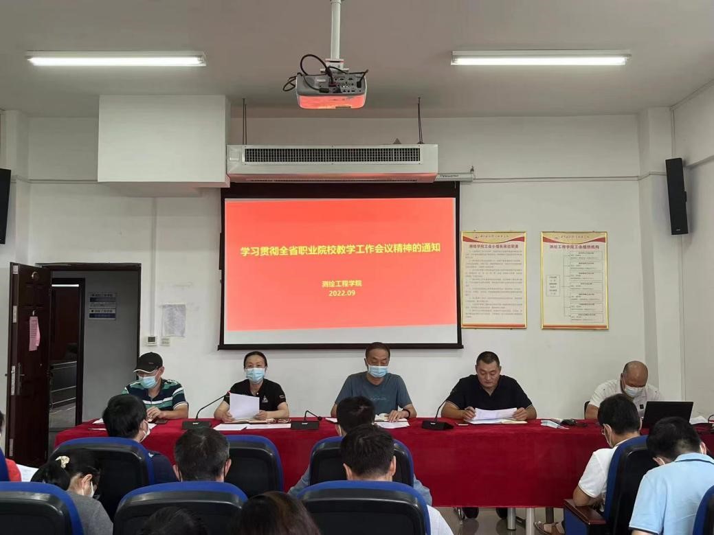 为深入学习习近平总书记关于职业教育工作重要指示,贯彻落实全国、全省职业教育大会精神,2022年9月20日,测绘工程学院组织全体教职工进行集中学习。