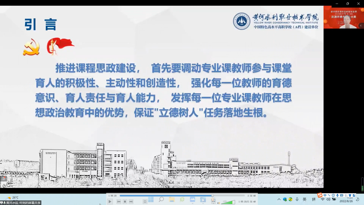 2022年8月26日,测绘工程学院组织全系教师参加2022年秋季学期第十四场资源环境与安全大类全国职业教育课程思政集体备课。本次集体备课兰州资源环境职业技术大学主办。