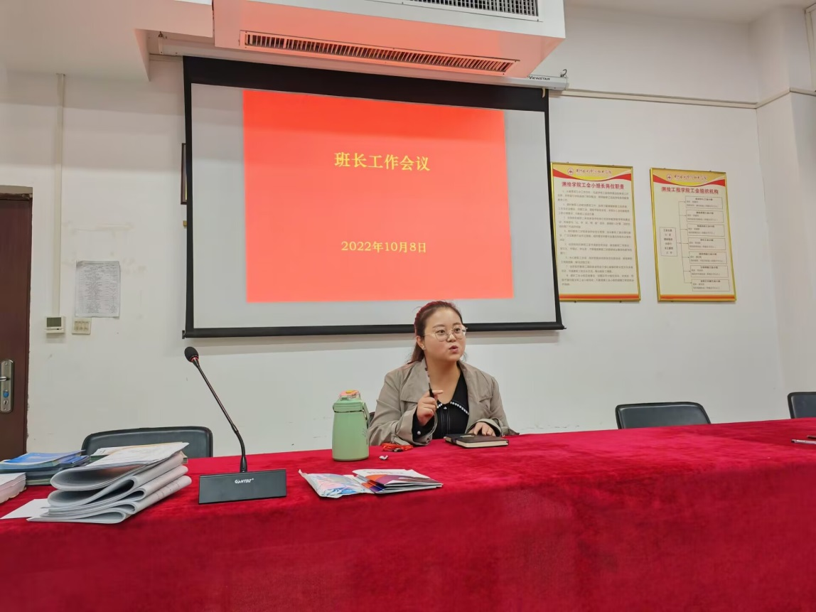 10月8日晚,辅导员胡苗苗于SY5434为测绘工程2201、工程测量2201-2203、测绘技术2201-2202,6个班班长召开了班长工作会议。