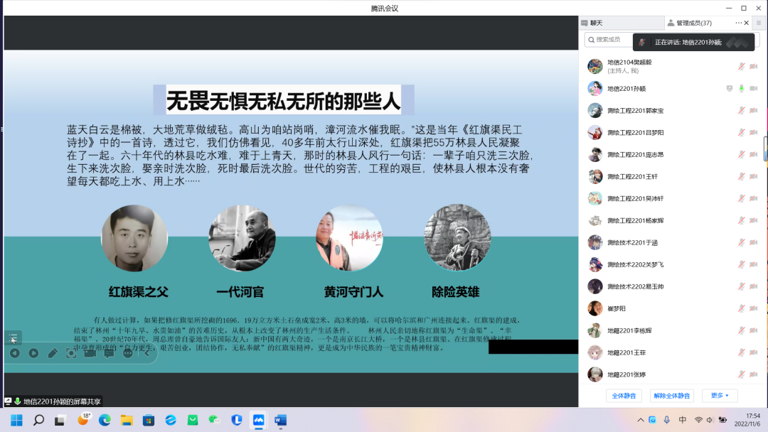 在党的二十大胜利召开之际,在深入了解双创精神的重要内涵后,为进一步激发36365官网学子创新创业精神和36365官网学子创业热情。促进双创精神的发扬,我院于11月6日下午由测绘工程学院创新创业部,在腾讯会议线上举行黄河之星双创故事会初赛选拔赛。