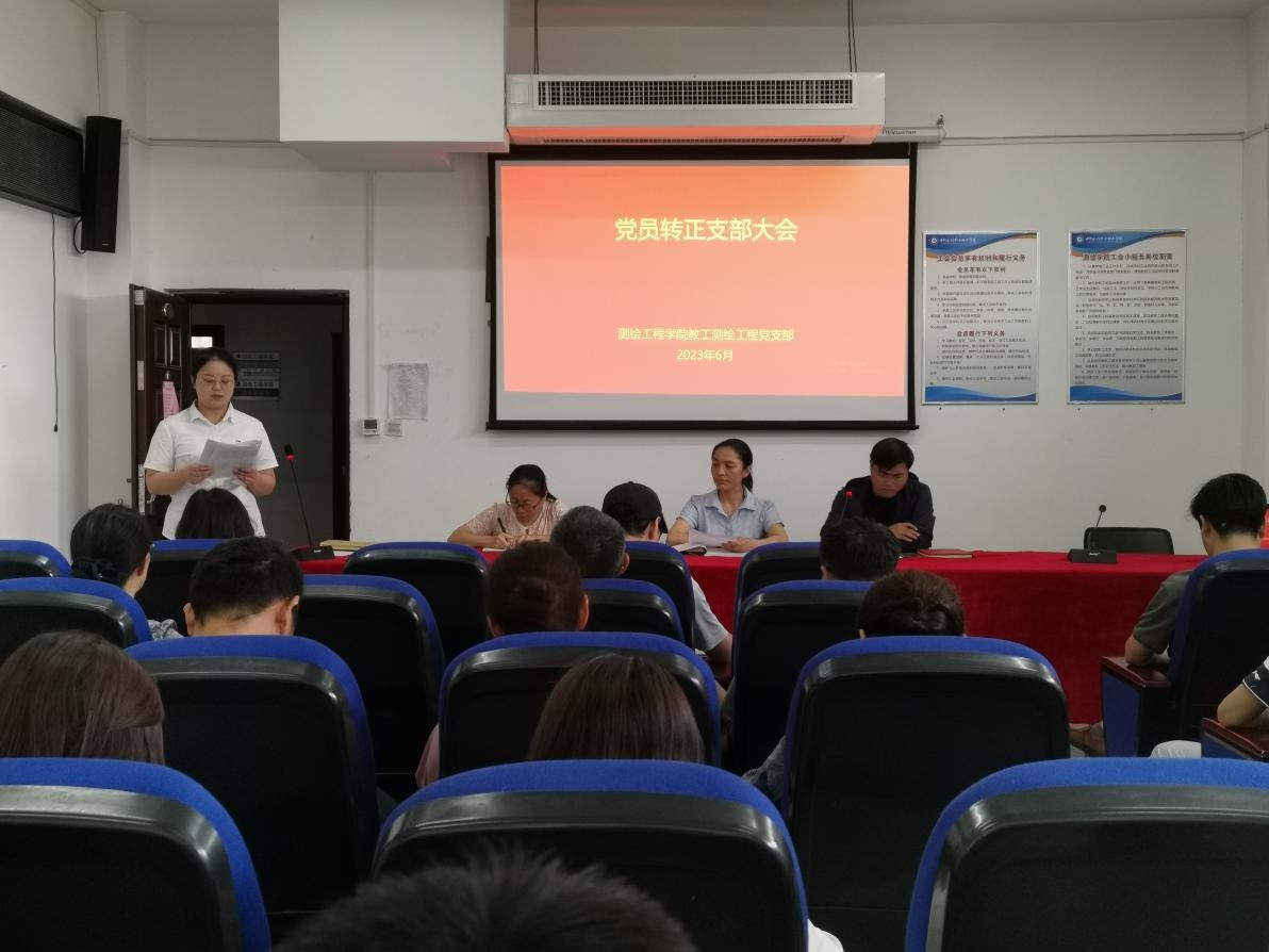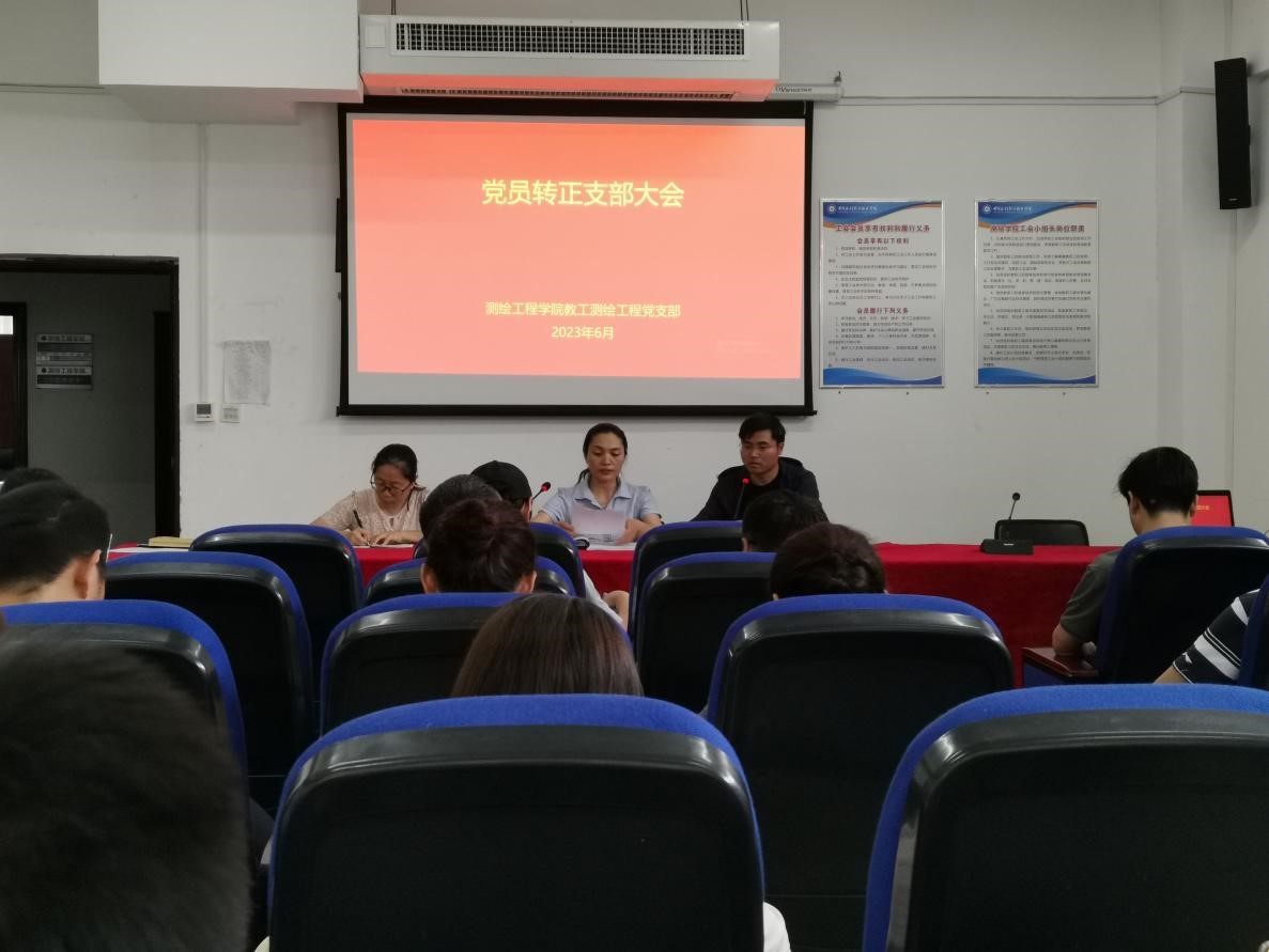 6月21日下午,测绘工程学院教工支部召开支部大会,讨论胡苗苗同志预备党员转正的问题,会议由教工支部副书记齐建伟主持。