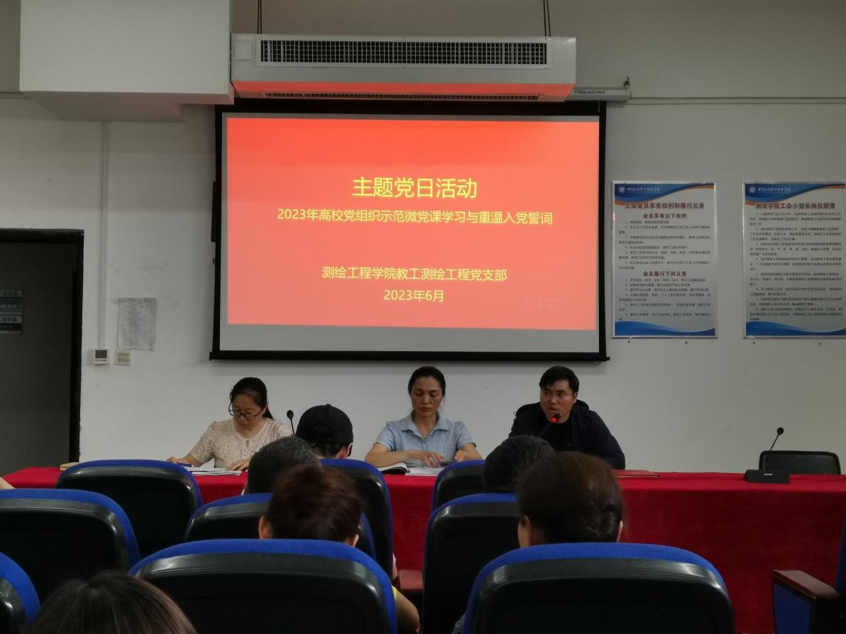 为迎接一年一度的“七一”建党节,6月21日,测绘工程学院教工测绘工程党支部支委会组织全体党员开展了庆七一主题党日活动,活动由支部副书记齐建伟主持。