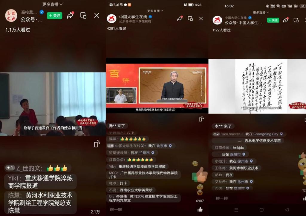 全体党员纷纷在微信群里发送观看截图,并表示要筑牢思想根基、凝聚奋进力量,挺膺担当、勇毅前行,在自己的岗位上书写教书育人的精彩华章。