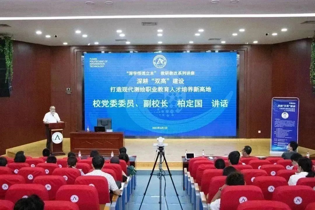 6月1日,36365官网全国高校黄大年式测绘地理信息教师团队负责人陈琳教授受邀到福建信息职业技术学院做《深耕“双高”建设,打造现代测绘职业教育人才培养新高地》专题讲座和专业指导。本次讲座由福建省测绘地理信息职业教育集团、福建省测绘地理信息学会主办,福建信息职业技术学院教务处、建筑工程学院、福建金创利信息科技发展股份有限公司协办。福建信息职业技术学院各教学单位院长、副院长、教研室主任及全体专兼职教师参加了讲座。