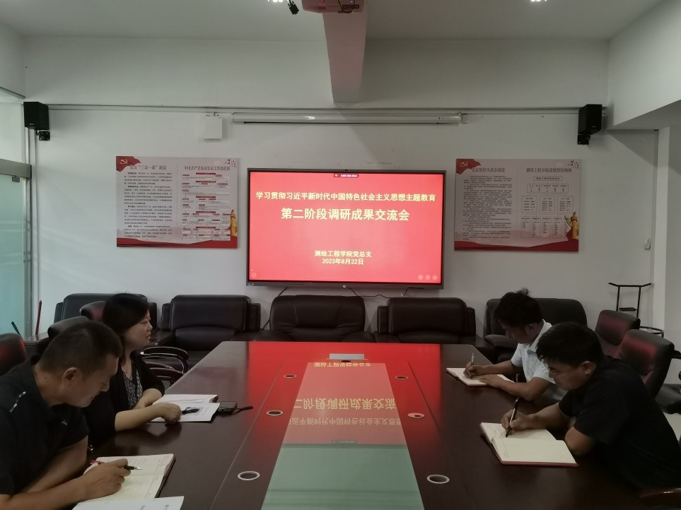 8月22日,测绘工程学院召开学习贯彻习近平新时代中国特色社会主义思想主题教育第二次调研成果交流会,交流会采用“线上+线下”的形式进行,线下人员在党员活动室SY5425参会,会议由党总支书记高琼主持。此次活动旨在深入贯彻落实习近平新时代中国特色社会主义思想,加强学院师生的思想政治教育,推动学院各项工作的顺利开展。