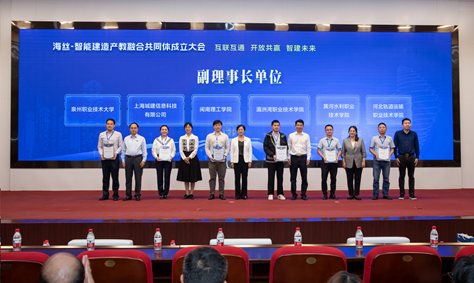 海丝-智能建造产教融合共同体是由华侨大学、黎明职业大学、福建金创利信息科技发展股份有限公司等联合境内外企业、科研机构、行业组织、普通高校、职业院校等自愿组成的非独立法人的产教融合型社会组织。通过校企资源深度融合,进一步推进“一带一路”愿景与行动在智能建造领域落地生根,为21世纪海上丝绸之路建设提供强有力的人才、智力和技术支持。共同体成立大会上举行了授牌仪式,俄罗斯自然科学院外籍院士、湖南大学教授黄靓,上海城建信息科技有限公司市场拓展部副总经理张志民等专家围绕产教融合作专题报告。