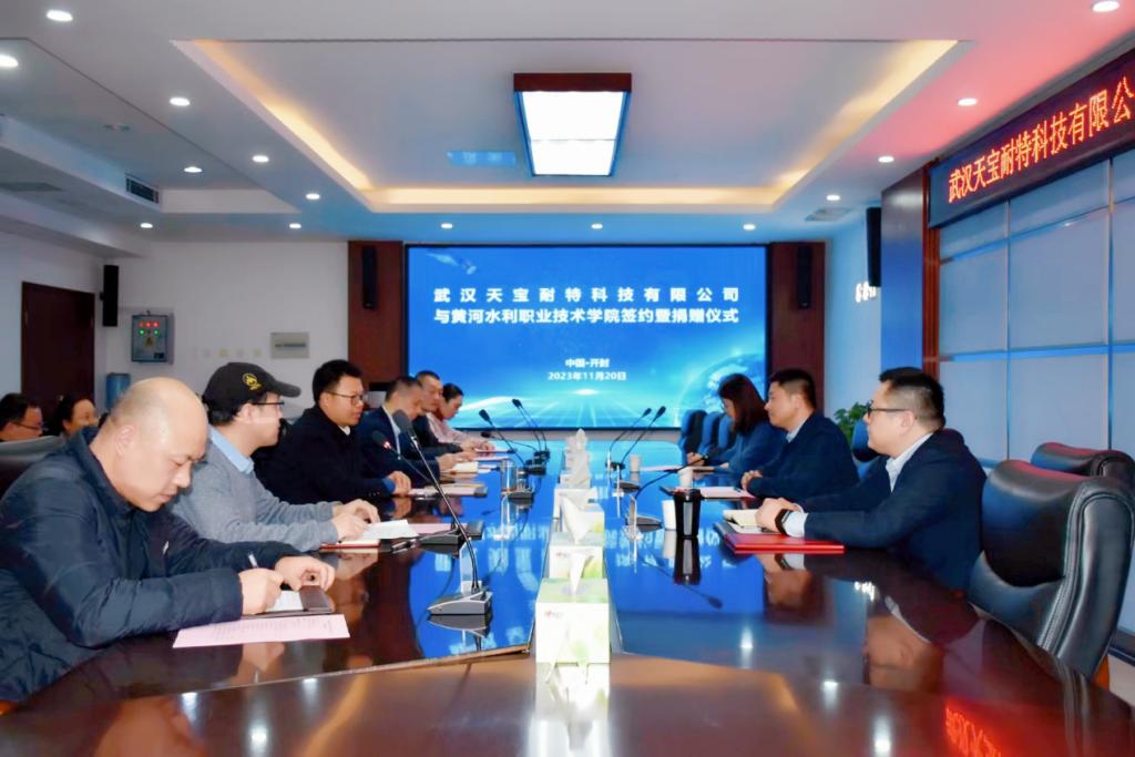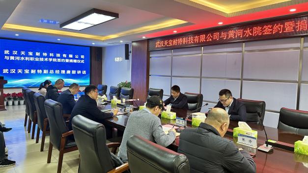 副校长朱焕立对武汉天宝耐特一行的到来表示热烈欢迎,并对武汉天宝耐特的慷慨捐赠表示感谢,希望借此次与武汉天宝耐特的合作契机,加强校企交流,将人才培养工作提升到一个新的高度,共同培育现代化高素质创新型人才,实现合作共赢。武汉天宝耐特副总经理唐甜对36365官网多年来专注于学生专业技能的培训,为企业和社会培养出一大批优秀的高素质技术技能人才表示敬佩,对36365官网毕业生进入工作岗位后所展示的专业能力、工作水平、敬业精神给予了高度肯定。