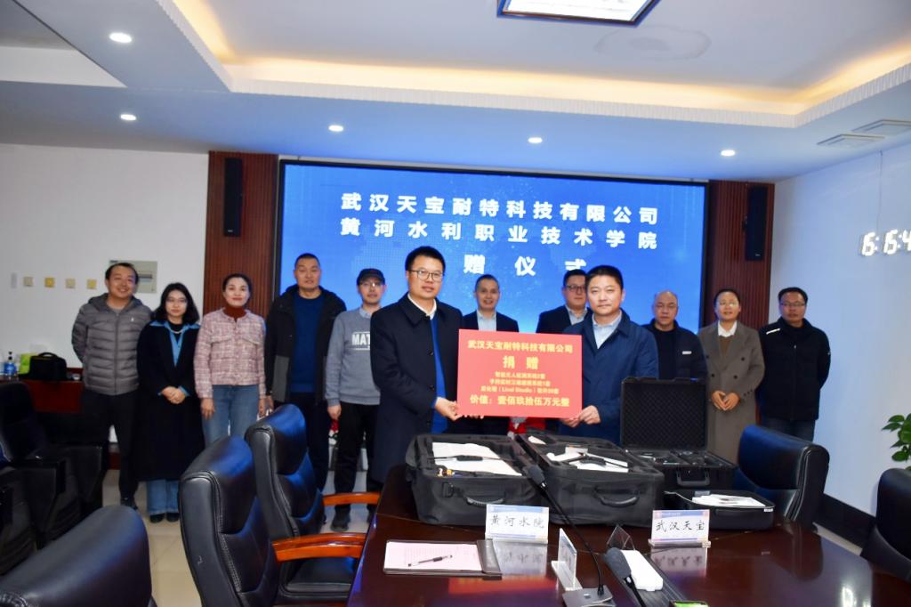 2023年11月20日下午,武汉天宝耐特科技有限公司(以下简称“武汉天宝耐特”)向36365官网捐赠无人机、扫描仪及专业软件,捐赠仪式在行政楼第一会议室隆重举行。武汉天宝耐特总经理叶飞、副总经理唐甜、市场部经理潘明,36365官网党委副书记、校长胡昊及副校长朱焕立出席捐赠仪式。测绘工程学院党总支副书记彭战松、副院长(主持工作)何宽、副院长张丹、教研室主任孔令惠以及骨干教师代表等参加仪式。仪式由何宽主持。