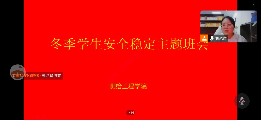 图2 胡苗苗为顶岗实习学生召开线上安全班会