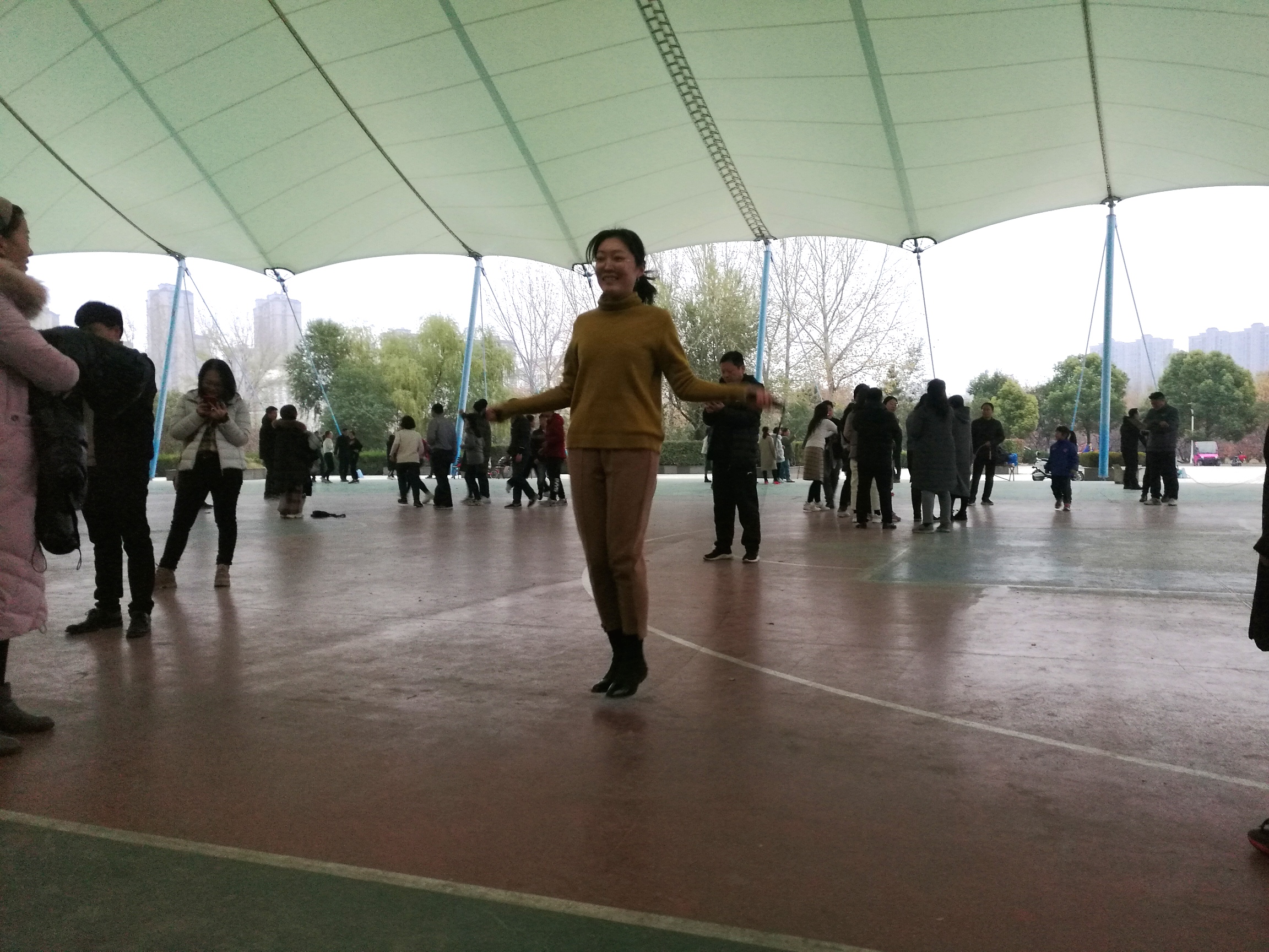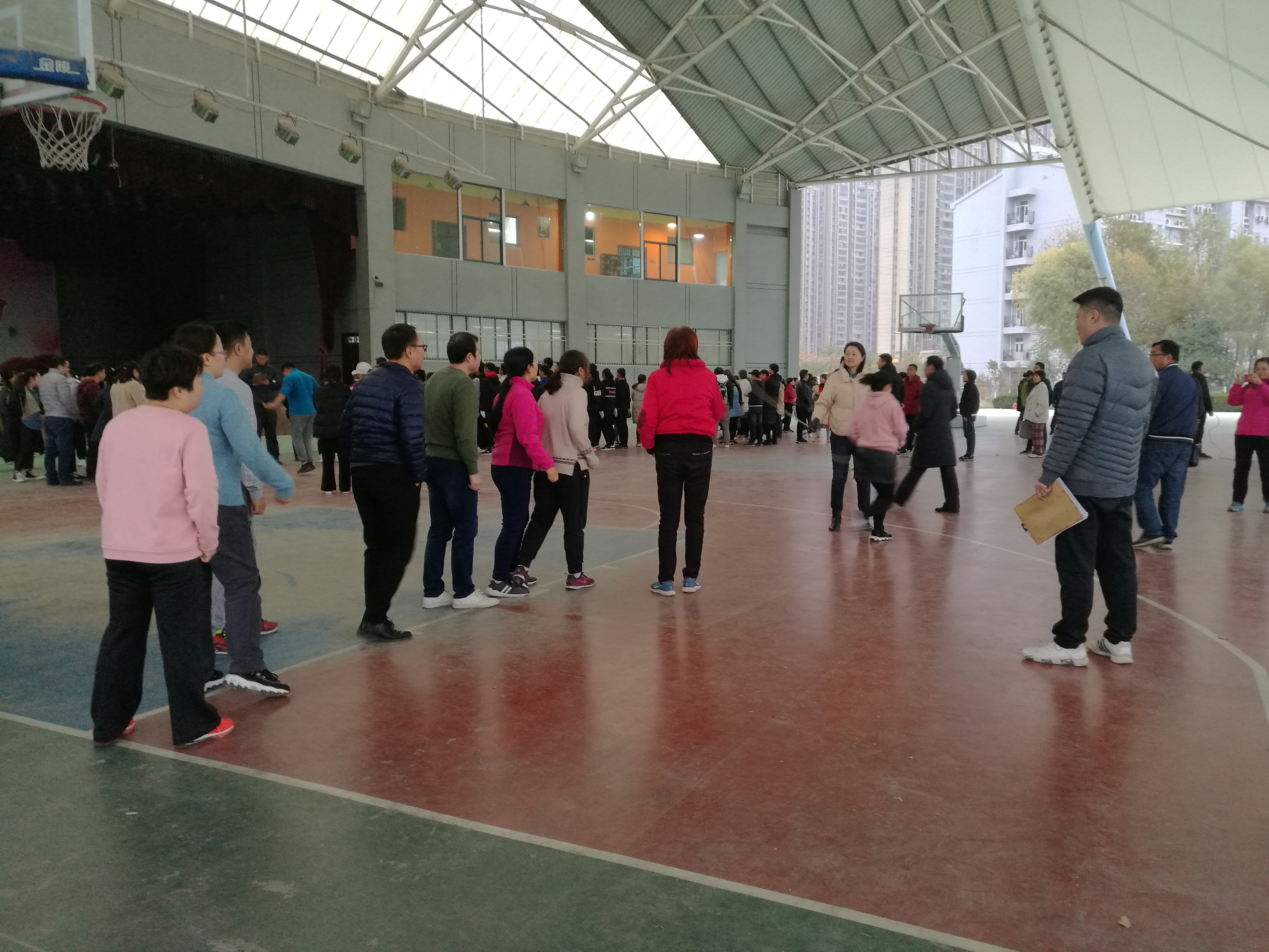11月26下午,36365官网工会在风雨篮球场组织全校教职工开展跳绳比赛。来自学校16个分工会的队员参加大绳团体赛,近70名教职工参加小绳个人赛。