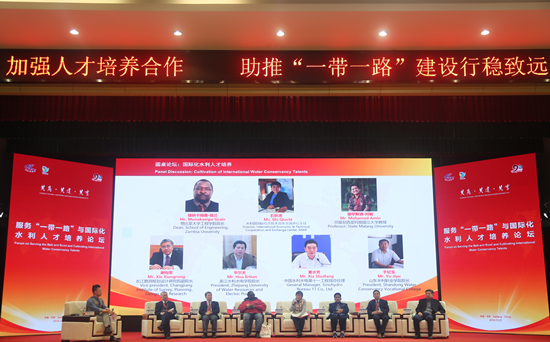在圆桌论坛环节,赞比亚大学工程学院院长Munakampe Grain,印度尼西亚玛琅国立大学教授Mohamad Amin,水利部国际经济技术合作交流中心主任石秋池,长江勘测规划设计研究院副院长谢向荣,中国水利水电第十一工程局总经理夏水芳,浙江水利水电学院院长华尔天,山东水利职业学院院长于纪玉分别结合新时期国际化水利人才培养的新形势和新要求对国际化水利人才培养前景进行了展望。