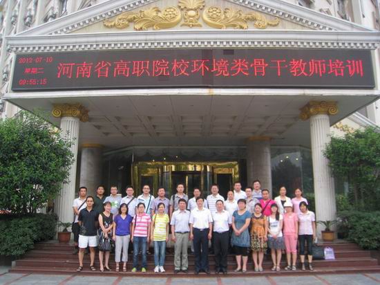 按照《河南省高等职业院校教师素质提高计划》的文件安排,2012年河南省高职院校环境类骨干教师培训班由我院环境与化学工程系承办,经过前期的充分准备,培训班于7月10日上午进行了开班仪式,党委副书记、副院长王卫东,环化系主任李党生、副主任朱惠斌、书记周志琦、副书记王振强出席开班仪式,来自全省12所高职院校的25名教师参加了仪式。