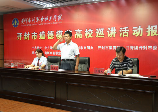 6月20日下午,我院学术报告厅座无虚席,开封市道德模范高校巡讲活动报告会在此隆重举行,入选“中国好人榜”的开封道德模范张庆禄、王军华为我院师生作了精彩的事迹报告。我院党委副书记刘卫锋,开封市文明办副主任曾庆轩、李波,院学生处处长朱焕立、团委副书记李聪等出席报告会。报告会由党委宣传部部长于兆国主持。