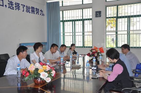 5月23日上午,上海东海职业技术学院创建办主任周大恂等一行3人到我院,就示范院校建设材料申报、项目管理、实训室建设等内容进行考察交流。我院教务处处长焦爱萍、机电工程系副主任谷礼新、水利系教研室主任陈诚、财经系教研室主任李冠军、示范办王靖等相关老师热情接待了来访客人。