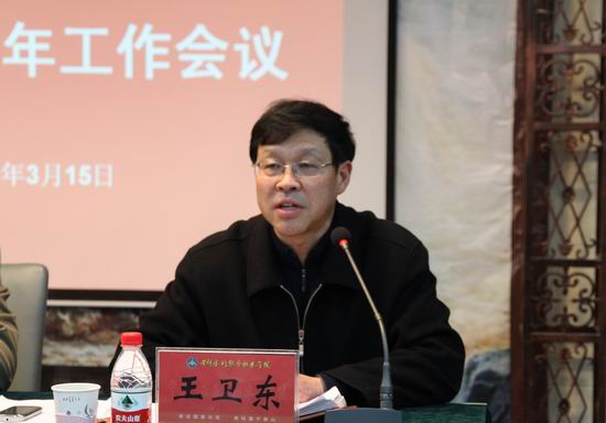 3月15日下午,我院学生工作委员会2012年工作会议在4号实训馆演播厅举行。院领导张惠贞、刘国际、茹正波、王卫东、刘紫婷和全体学工委委员出席会议,各系系主任和主管学生工作的副书记,以及学生处、团委、招生就业中心的全体工作人员列席会议。会议由党委副书记、纪委书记王卫东主持。