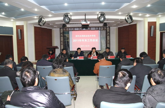 院长刘国际首先对2011年各项工作进行了简要总结。他说,2011年是我院加快完成示范性建设成果转化的一年,是我院加强内涵建设狠抓教育教学质量的一年。在全院教职工的共同努力下,我院在党建与宣传思想工作、教学与科研管理、师资队伍建设、学生管理、招生就业、技能竞赛等各方面均取得了巨大成绩。特别是以下佳绩更是可喜可贺:我院师组织4批137人次骨干教师赴香港、新加坡、德国等参加培训,周建郑等4名教师获得全国教学名师和水利职教名师,职称评审改革稳步推进,19位教师申报高级职称首次全部获批;我院2个省级教学团队通过验收,获得省级精品课程1门,省级特色专业3个,省级优秀课程1门;我院参加全国各类技能大赛捷报频传,机电系数控加工技术代表队获得全国职业院校技能大赛一等奖,填补了河南省的空白,水利系制图参赛队获得“高教杯”全国大学生制图大赛“三连冠”,我院参加“钱江杯”水利高职技能大赛再次获得团体冠军;我院招生就业工作再次取得好成绩,2011级报到率达到90.73%(比去年增加1.54个百分点),截至目前,2012届毕业生就业率为57.08%(比去年增加12个百分点);我院实现了师生公寓、教学楼的供暖,为教职工开办了职工餐厅并发放了就餐补助,两项“暖心工程”圆满完成。这些成绩的取得,一是得益于我院示范性高职院校建设成效的不断显现,二是得益于全体教职工团结协作、共同努力,不怕困难、敢于争先。