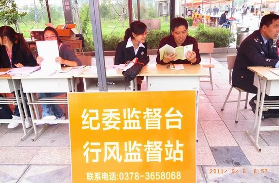 行风评议监督员深入到正在报到的新生和家长中,通过主动攀谈来掌握新生接待报到等第一手材料;同时帮助新生办理报到手续;对新生遇到的困难,能解决的立即帮助解决;对于迎新工作中需要改进的问题及时进行纠正,需要研究的问题立即汇报学院领导。通过热情服务、真抓实干来端正行风,切实把行风建设工作落到了实处,做到了“让家长满意、让学生满意、让社会满意”,把争创“人民群众满意学校”工作做到学生家长心坎里去。
