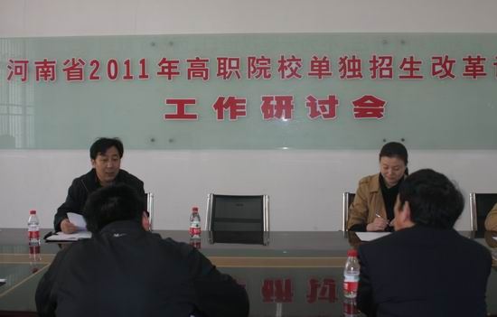 4月1日上午,河南省具有单独招生改革试点资格的7所院校(即bet36365路检测中心、平顶山工业职业技术学院、商丘职业技术学院、河南职业技术学院、河南工业职业技术学院、河南农业职业学院、郑州铁路职业技术学院)在我院召开单独招生工作会议,7所院校的招生就业处处长共同研讨了2011年单独招生相关事宜。会议由我院招生就业中心、工学结合办公室主任于兆国主持,我院招就中心副主任李纪宾、戴建锋参加了会议。