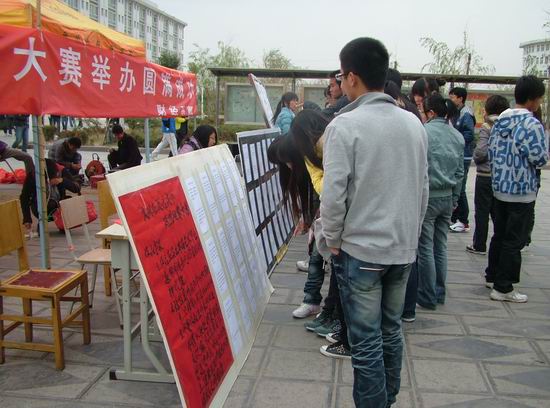 作为第十四届科技文化艺术节系列活动之一,11月14日,由院团委主办、财经系承办的“文明在我话语中”校园短信征集大赛在扬帆路举行。活动吸引了许多学生的积极响应,营造了健康向上的校园文化氛围。