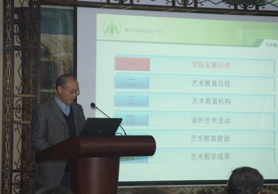 会上,刘国际院长代表学院对省高校艺术工作评估专家组的到来表示热烈的欢迎和衷心的感谢。艺术教育评估专家组长巩伟在会上讲话,指出公共艺术教育在高校中的重要地位。他说,专家组受省教育厅的委托对bet36365路检测中心艺术教育工作进行评估,将严格按照教育部关于高校艺术教育的各类文件和指标体系检查该校艺术教育各项工作是否规范和完善。随后,艺术系副主任宗致远就我院近年来的公共艺术教育工作做了整体汇报,并向专家展示了学院发展历史、学院艺术教育发展过程、艺术教育机构设置、课外艺术活动、艺术教育建设、艺术教育成果等内容。