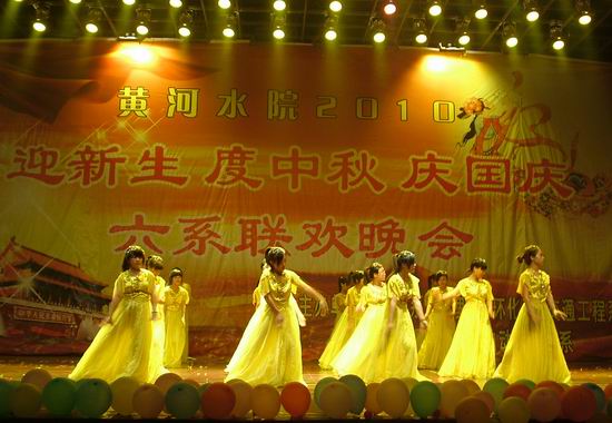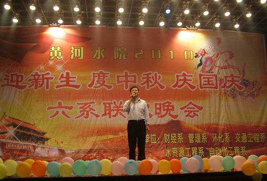 迎新晚会在慷慨激昂的6系大合唱《黄河水院校歌》中拉开了序幕。王卫东副书记为晚会致辞,向广大2010级新同学即将迈入新的人生旅程表示祝贺,并预祝全体师生中秋、国庆双节愉快。他希望同学们志存高远,努力拼搏,学好专业知识,书写美好未来,为黄河水院的发展奉献自己的力量。