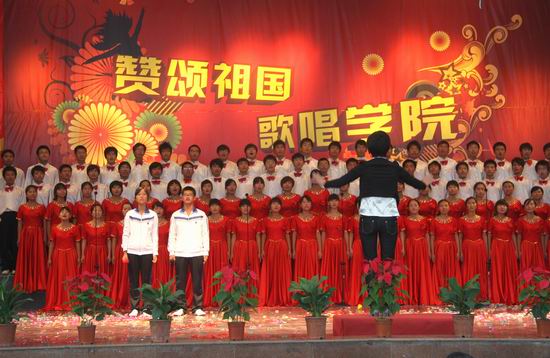 在各系合唱团的展演结束之后,院领导、老师和同学们一起高唱《歌唱祖国》,表达对祖国61岁华诞的深深祝福。