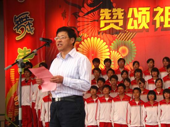 此次活动以“赞颂祖国、歌唱学院”为主题。王书记首先代表党政领导及全院1000余名教职工向2010级新同学送去节日的祝福。他说,在纪念抗战胜利65周年、国庆61周年即将来临之际,希望同学们铭记革命烈士的精神,弘扬中华民族光荣传统,培养爱国主义高尚情操,以饱满的热情和强烈的责任心担负起建设祖国的重任,以艰辛的努力和自强不息的精神共创祖国美好未来,以积极的态度和渊博的知识推动学院的发展。