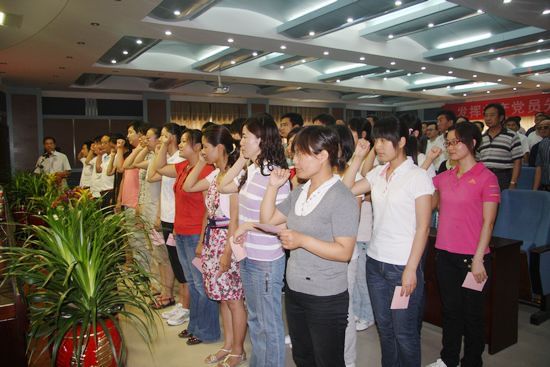 之后,副院长刘紫婷宣读了参加入党宣誓的新党员代表名单。学院进行了新党员入党宣誓仪式,老党员重温入党誓词活动。在组织部部长张豫东的带领下,与会党员面向党旗进行了宣誓。