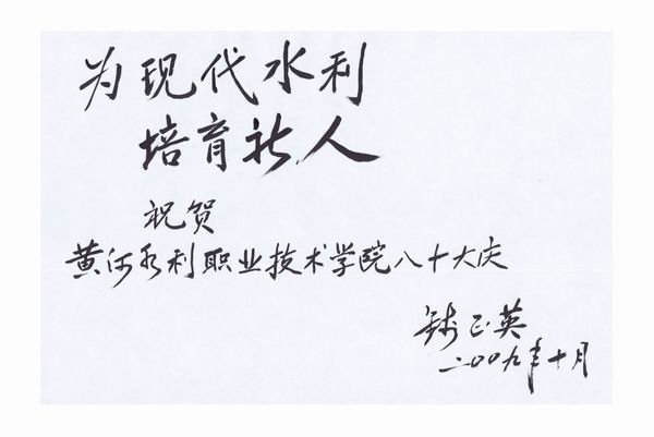 全国政协副主席、水利部原部长钱正英为学院校庆题词