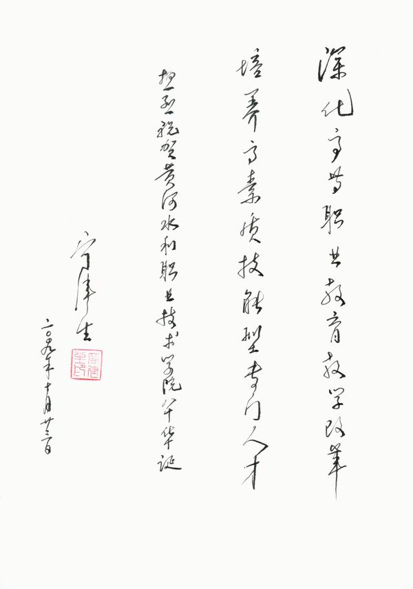 中国水利教育协会副会长、水利部原人教司司长陈自强为学院校庆题词