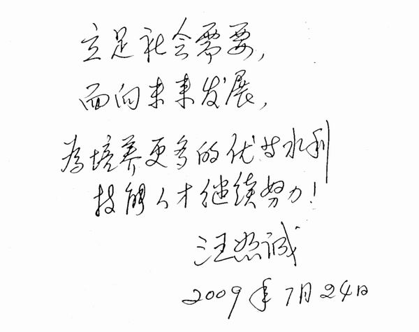 中国工程院院士、原武汉测绘科技大学校长宁津生为学院校庆题词