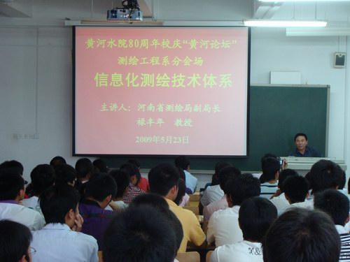5月23日下午,测绘系在JX2201举办了黄河水院80周年校庆“黄河论坛”分会场,邀请了河南省测绘工程院院长宋新龙教授作“工学结合,校企合作”学术报告。系党总支书记周建郑和该系200余名学生参加了学术报告会。